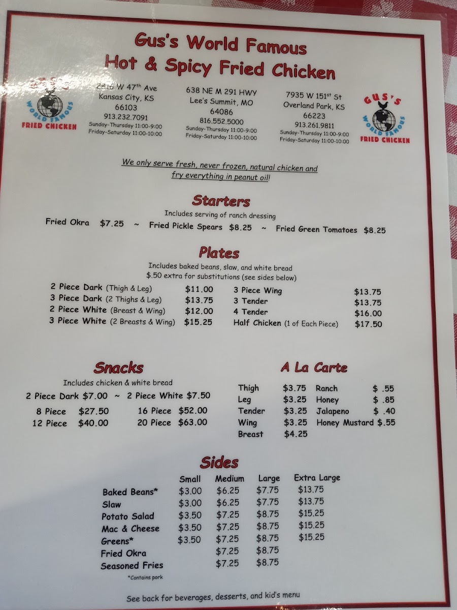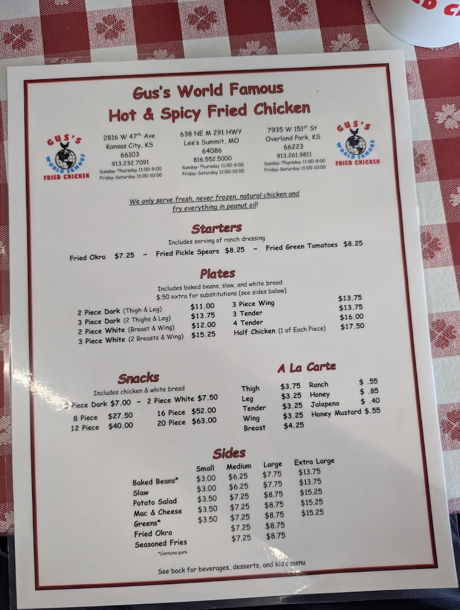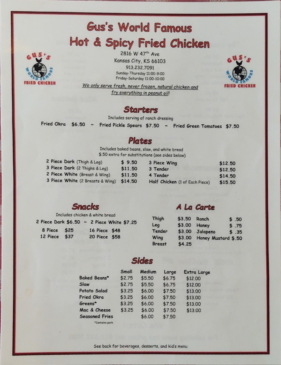 Welcome to Gus's World Famous Fried Chicken, a cherished culinary gem nestled in the heart of Kansas City, KS. More than just a chicken restaurant, Gus's is a place where flavor reigns supreme and every bite tells a story. Known for its fried chicken that boasts a perfect crisp and zest, you’ll find that each dish is not just a meal, but an experience.